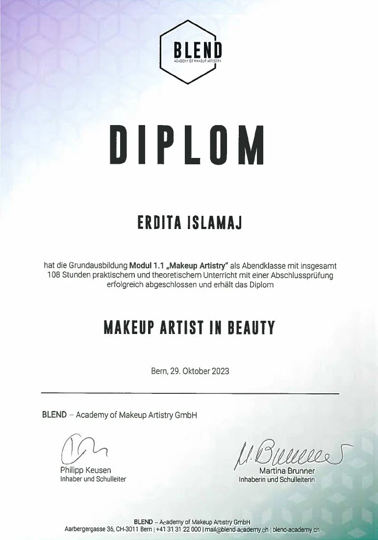 2023 habe ich erfolgreich eine Ausbildung als Make-up-Artistin absolviert